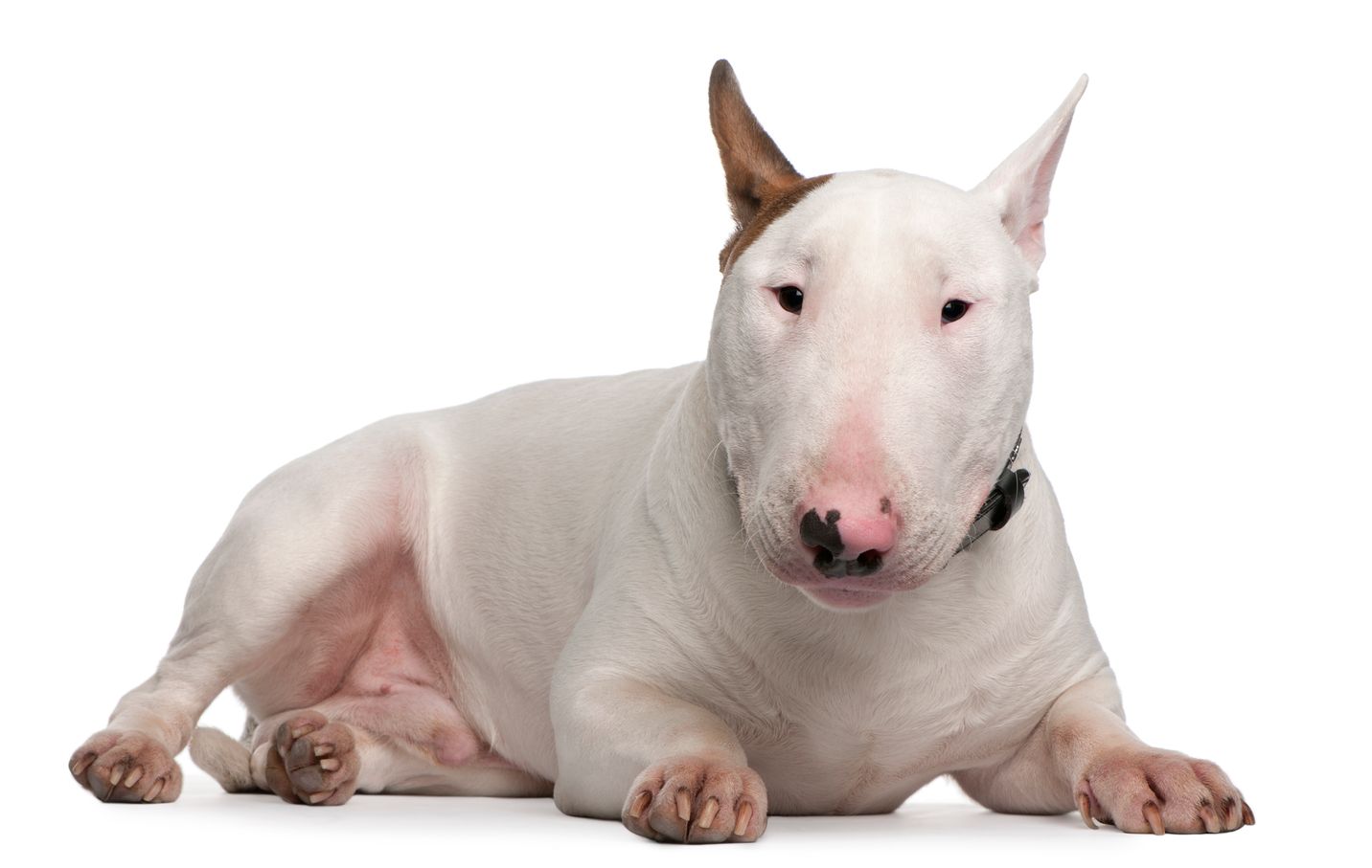 Health and Welfare Problems due to Conformation Body shape and physical characteristics The Bull Terrier has a nose shape which is not natural for a dog and which through selection has become extreme in some cases. Eye problems As you can see from the pictures they have quite large ears eyes and a short snub muzzle and due to their protruding eyes they need to be checked regularly for any foreign objects including grass seed as seeds could cause the eyes to become. According to an article on the genetics of color found in The Encyclopedia of the American Pit Bull Terrier the cells that create pigmentation interact closely with the neurological and immune systems.